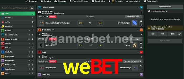 O webet oferece uma grande seleção de opções de apostas em e-sports com probabilidades competitivas